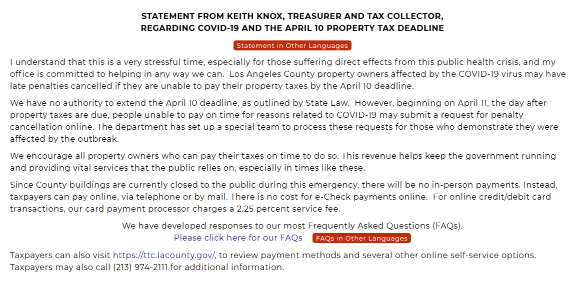 City Of Avalon With The April 10 2020 Property Tax Deadline Approaching We Know There Is Uncertainty In How You Can Handle This Situation And What Your Options Are If You